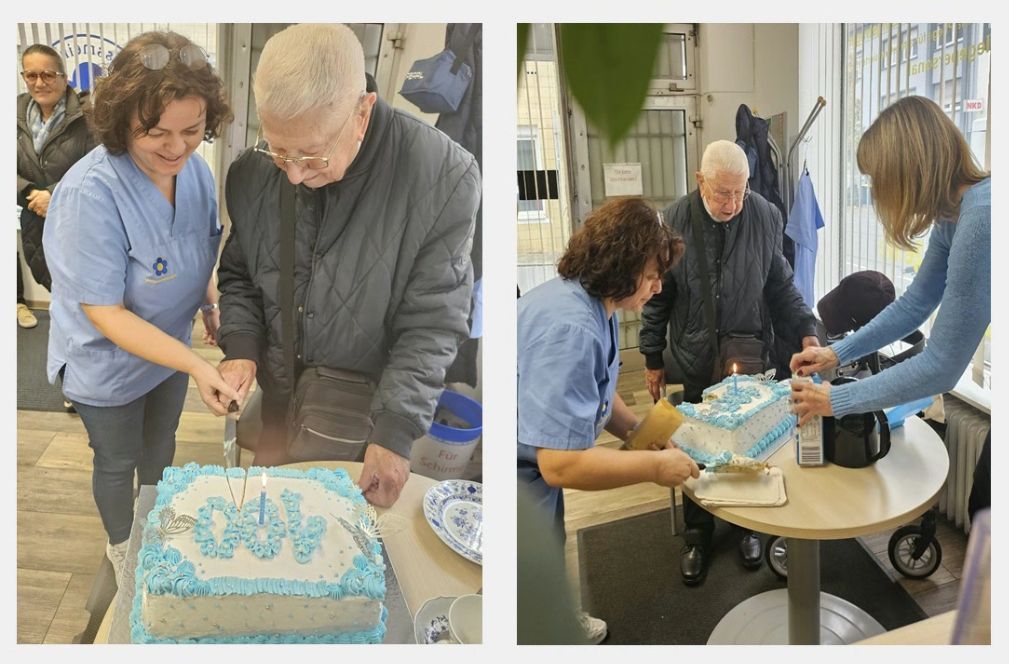 Noch ein schönes Jubiläum gab es am 02.11.2025 zu feiern. Ein weiterer Klient vom Pflegedienst Vergissmeinnicht ist 100 Jahre alt geworden. Zur Feier des Tages hat das Team eine 100-Torte gebacken und in unser Büro eingeladen. Ein schöner Moment, den wir per Bilder und Video festgehalten haben. Nochmal alles Liebe & Gute zum Wiegenfest vom Team Vergissmeinnicht.